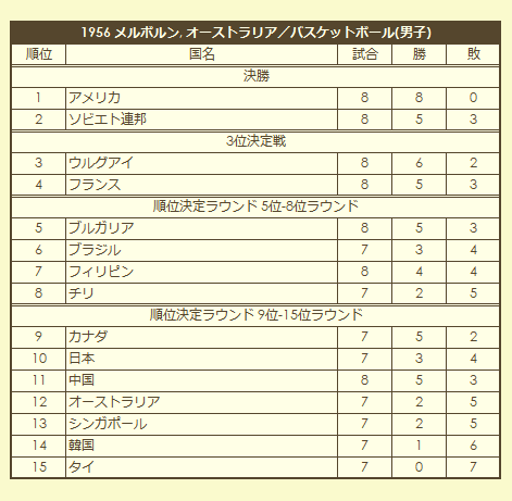 | | オリンピックの男子バスケットボール 最終順位 | 1904-2024 |