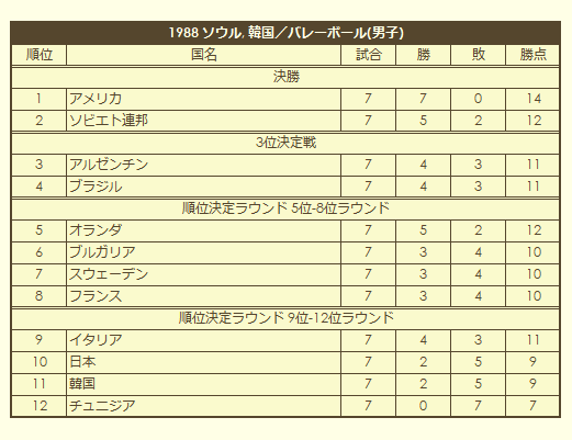 | | オリンピックの男子バレーボール 最終順位 | 1964-2024 |